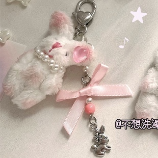 新品 废土风垂耳兔子汽车钥匙扣挂件可爱毛绒玩偶包包小挂饰礼物