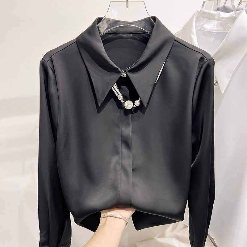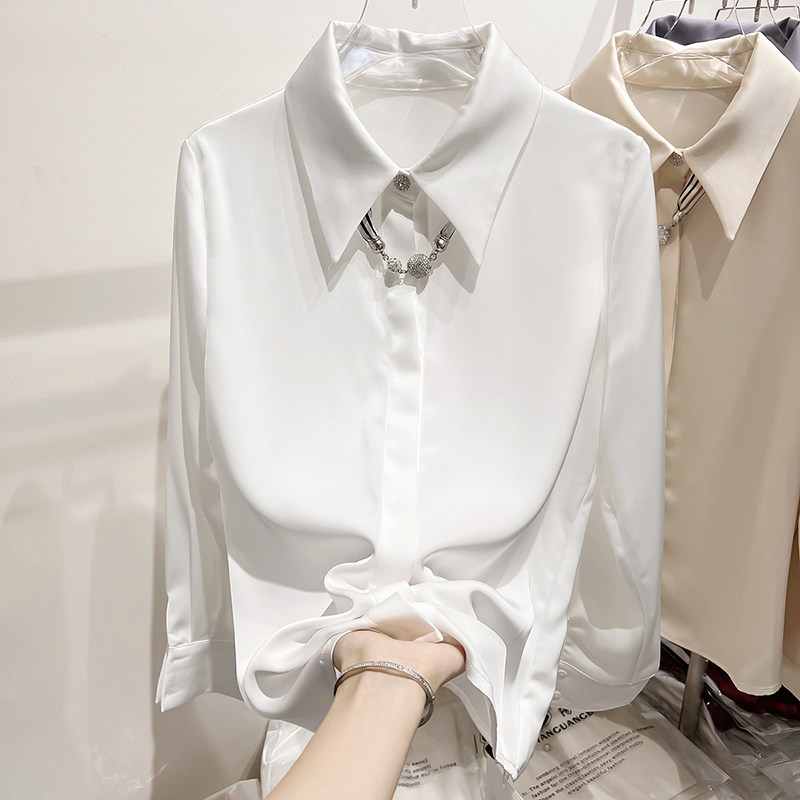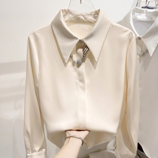 法式 薄款 气质显瘦纯色翻领送丝巾长袖 女秋季 上衣 雪纺衬衫 2023新款