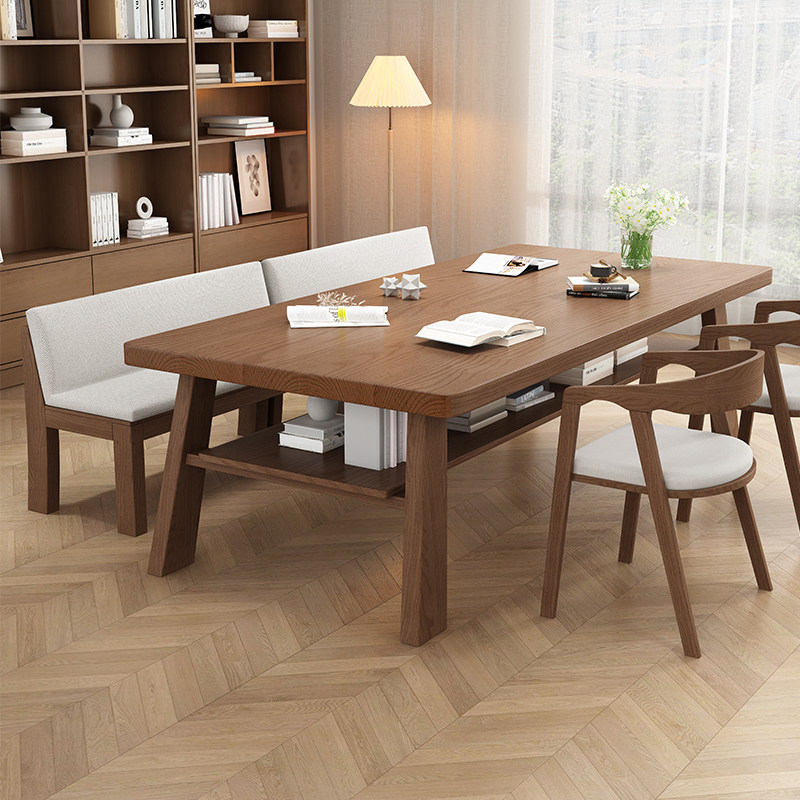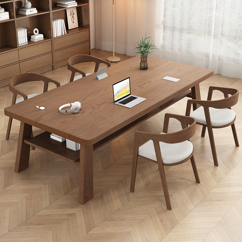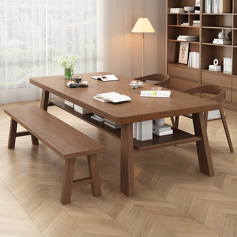 简约家用客厅书房办公室实木大书桌电脑桌带层板置物学习桌办公桌