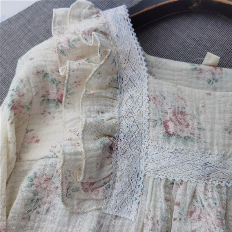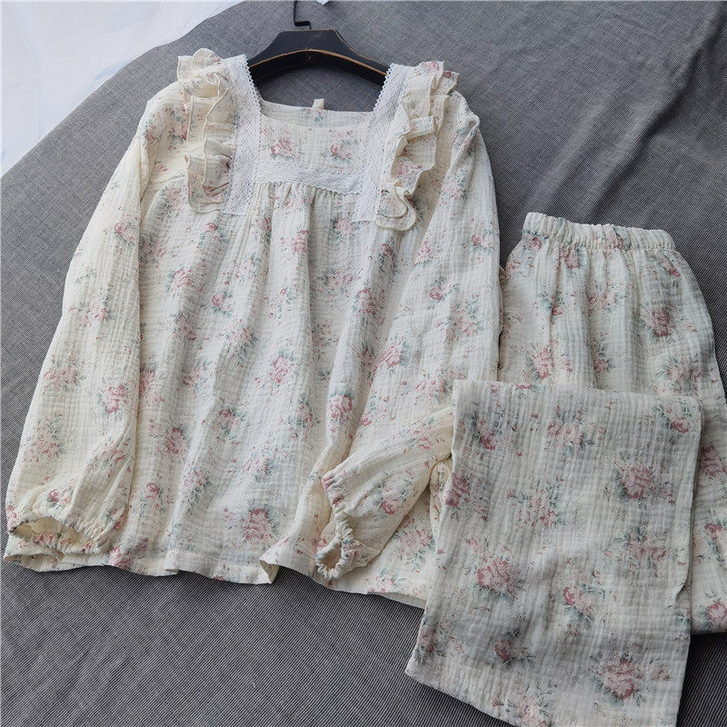浪漫女睡衣家居服长袖 田园风 套头方领全棉纱布甜美花边春夏秋薄款