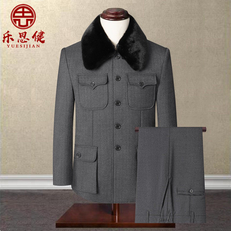 男套装 爷爷装 爸爸装 老年人中山服爸爸装 加绒加棉老人秋冬装 中山装