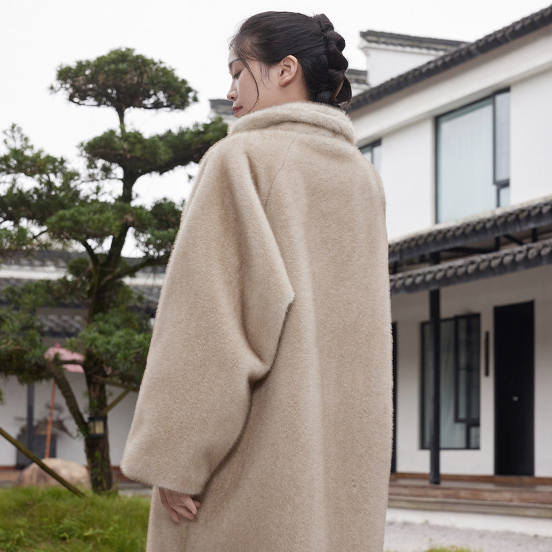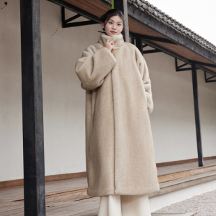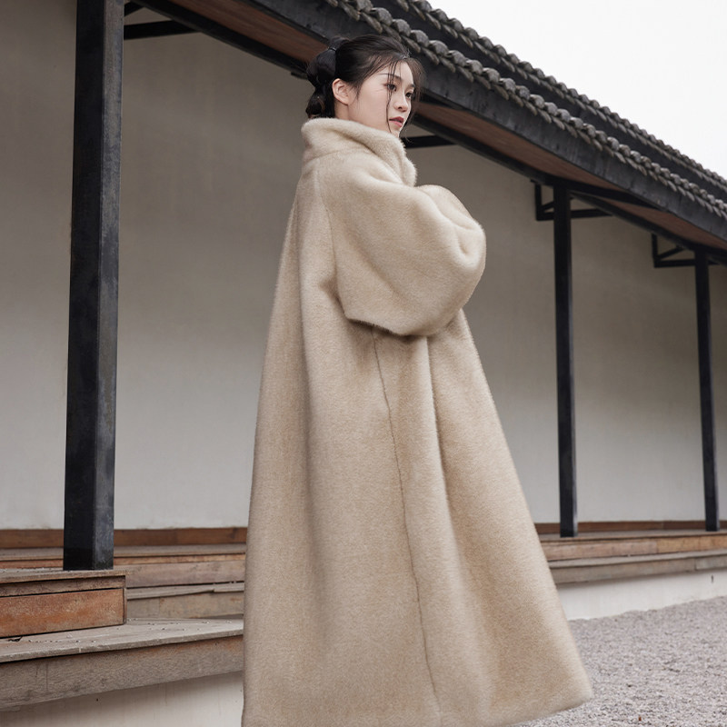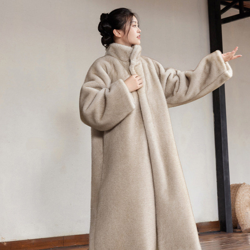 听旬暖冬季 加厚保暖防风外套女 原创国风双色仿貂毛皮草大衣中长款