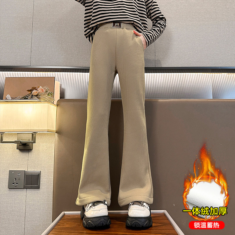 浅色糯米休闲裤 子 女秋冬加绒胖妹妹mm高腰宽松显瘦梨型身材阔腿裤