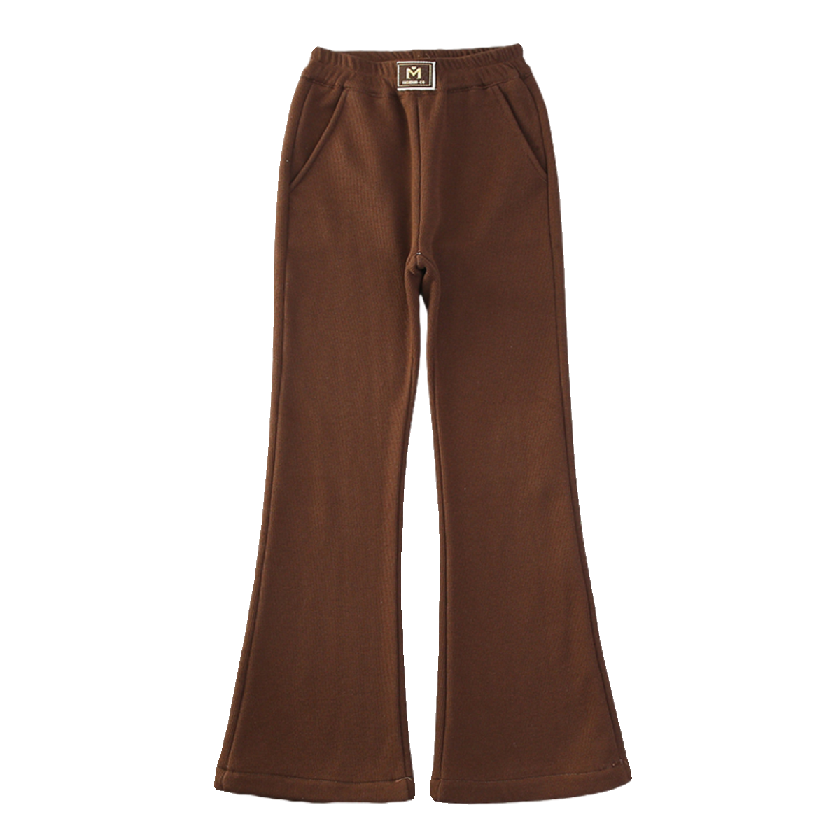 子 胖妹妹mm高腰弹力显瘦马蹄裤 加绒加厚咖色微喇牛仔裤 女秋冬新款