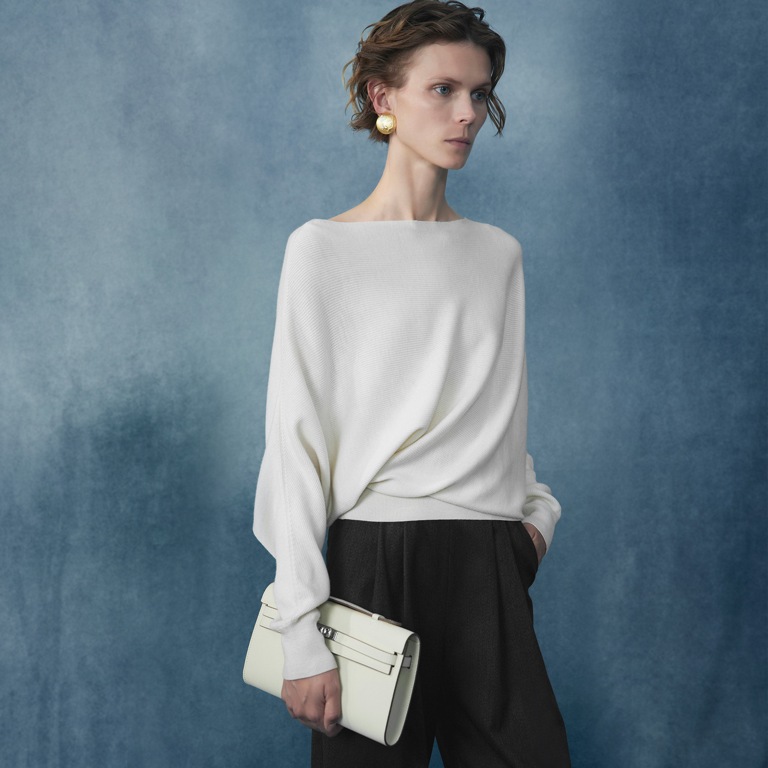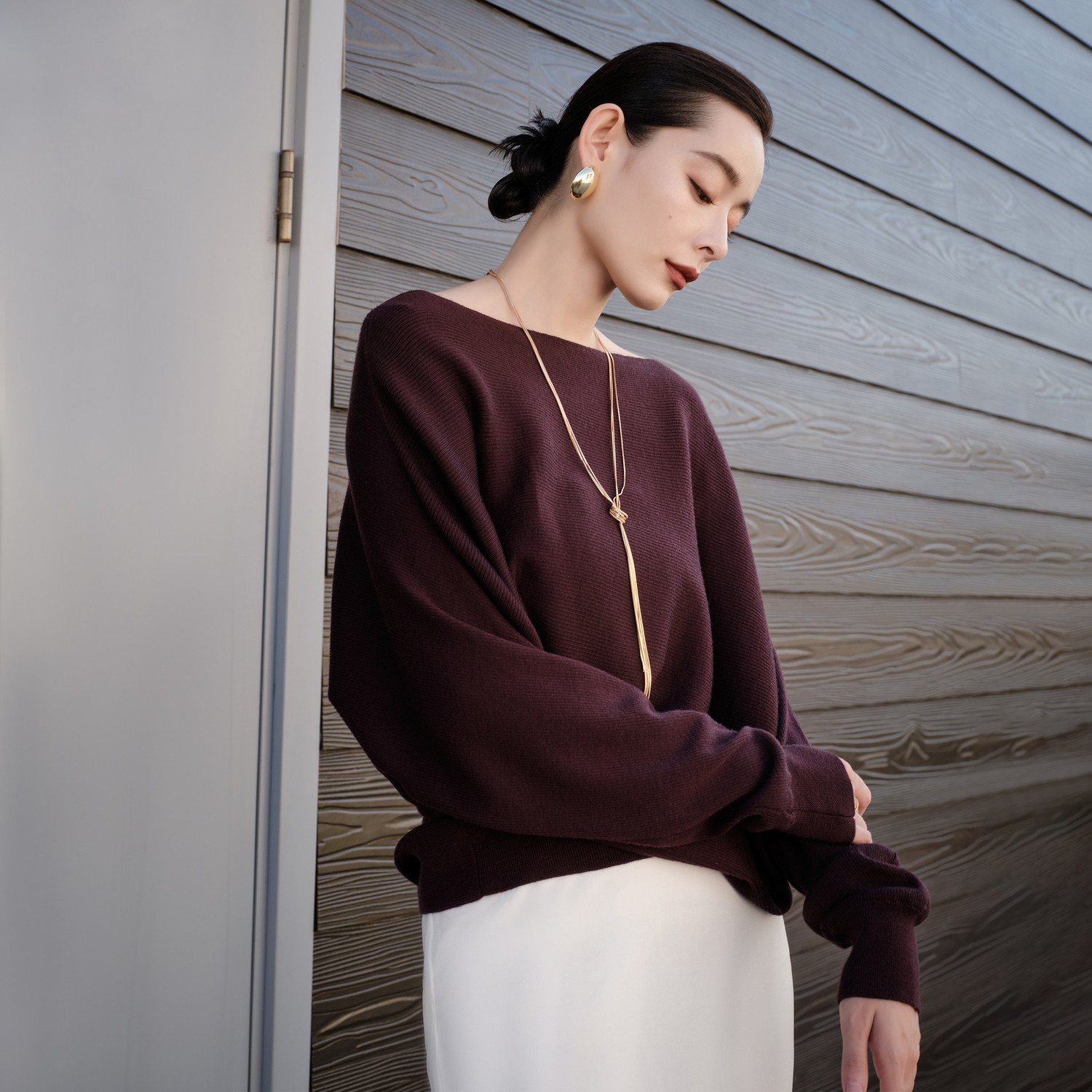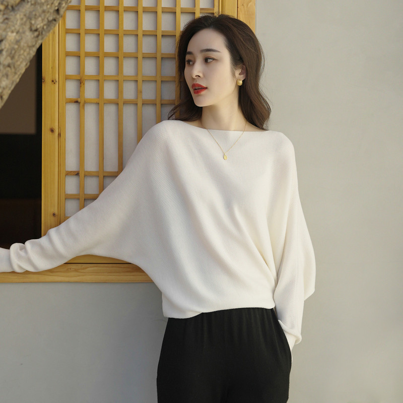 明星同款 套头毛衣宽松慵懒针织衫 TU女装 一字肩羊毛衫 上衣 法式