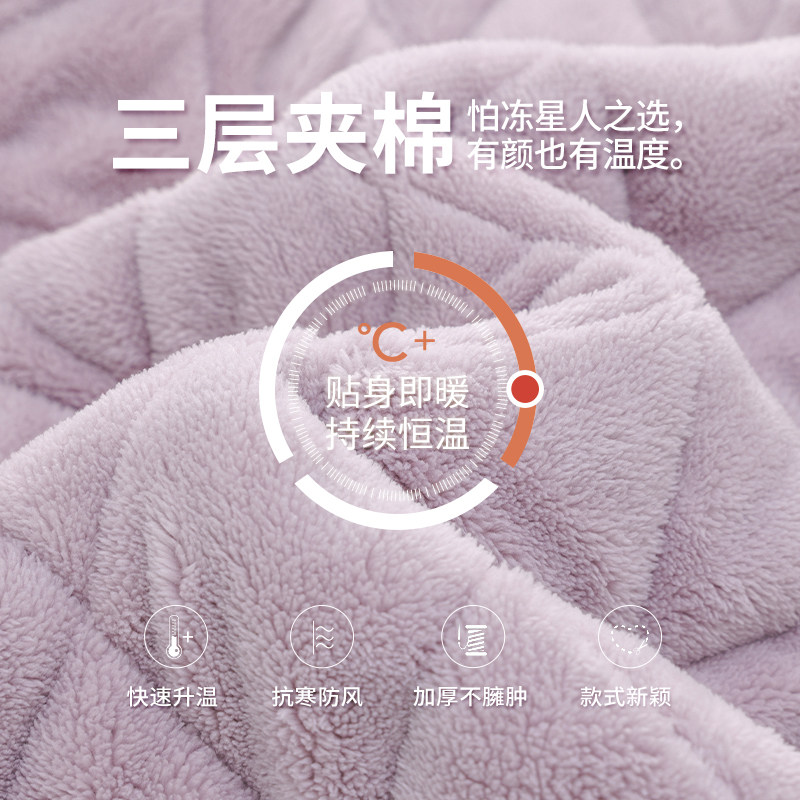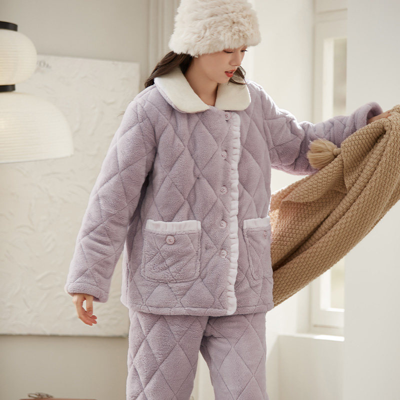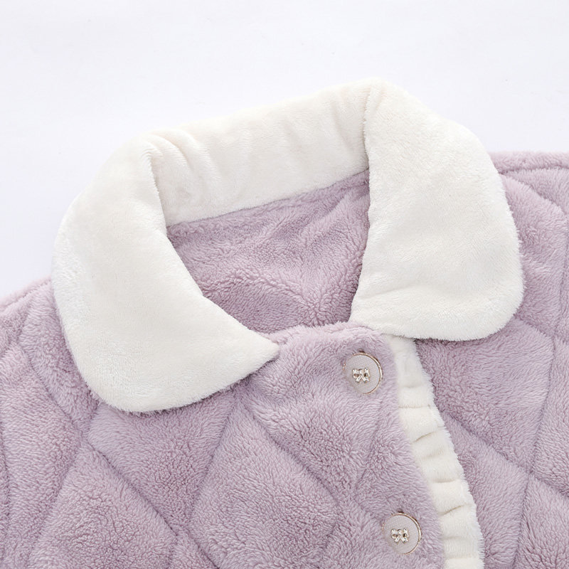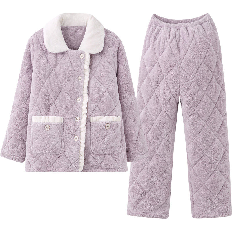 马克公主夹棉睡衣女冬季 三层加厚珊瑚绒加绒保暖超厚奶乎乎家居服