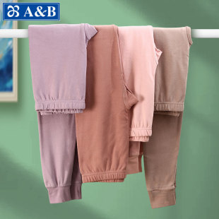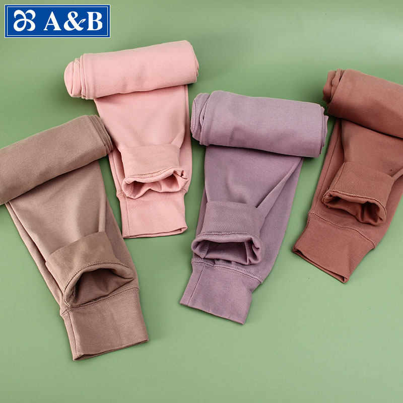 单件秋冬保暖裤 宽松高腰中厚打底全棉毛裤 磨毛大码 AB纯棉女士秋裤