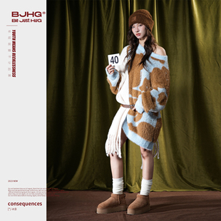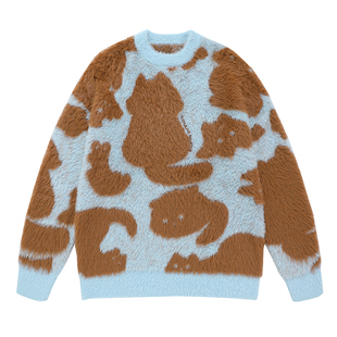针织衫 冬季 情侣毛衣女 BJHG不计后果奶牛猫仿貂毛毛衣男装 李昊同款