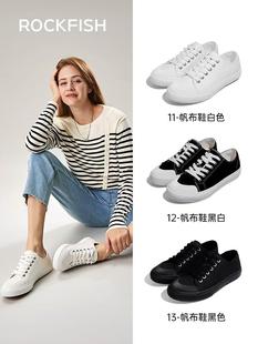 防泼水帆布鞋 休闲鞋 女小白鞋 懒人秋季 一脚蹬渔夫鞋 Rockfish正品