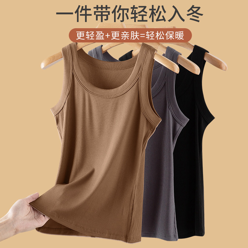 加绒加厚紧身棉吊带 内搭打底衫 贴身保暖背心女秋冬季 德绒无痕大码