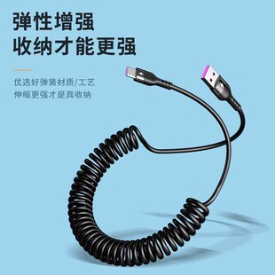 极客小K c车载充电线弹簧线宝线摩托车线适用华为苹果50A闪充安卓手机通用车载伸缩收 66w超级快充数据线Type