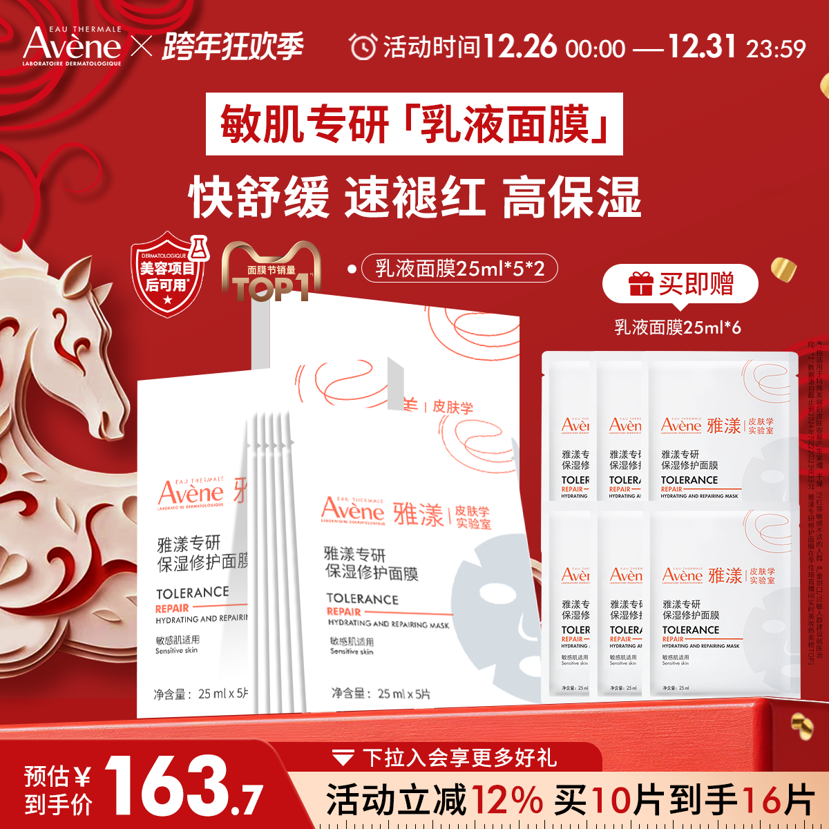 雅漾专研修护乳液面膜乳敷b5敏肌褪泛红补水贴片 跨年狂欢抢购