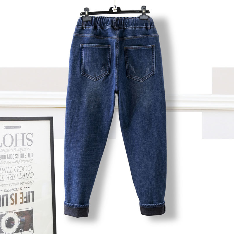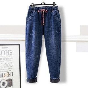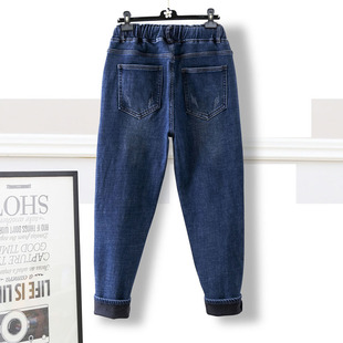 女装 子女裤 韩版 女秋冬胖mm黑色加绒阔腿裤 宽松牛仔裤 300斤特大码