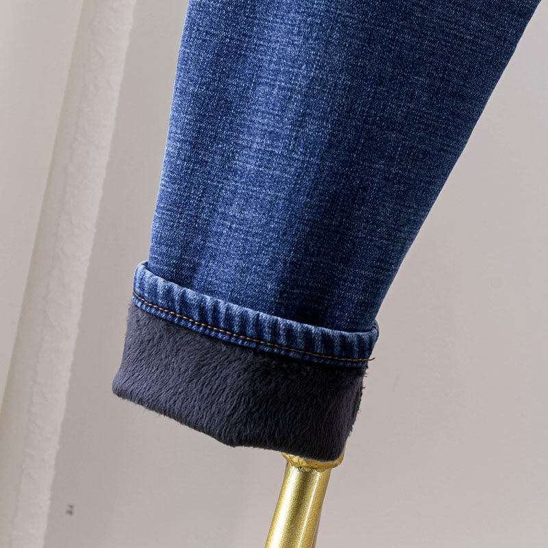 梨形身材胖mm高腰弹力显瘦九分裤 加绒大码 子 女冬季 黑色微喇牛仔裤