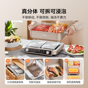 美 分控鸳鸯锅多功能锅火锅专用锅 超薄速沸电火锅电锅家用分体式