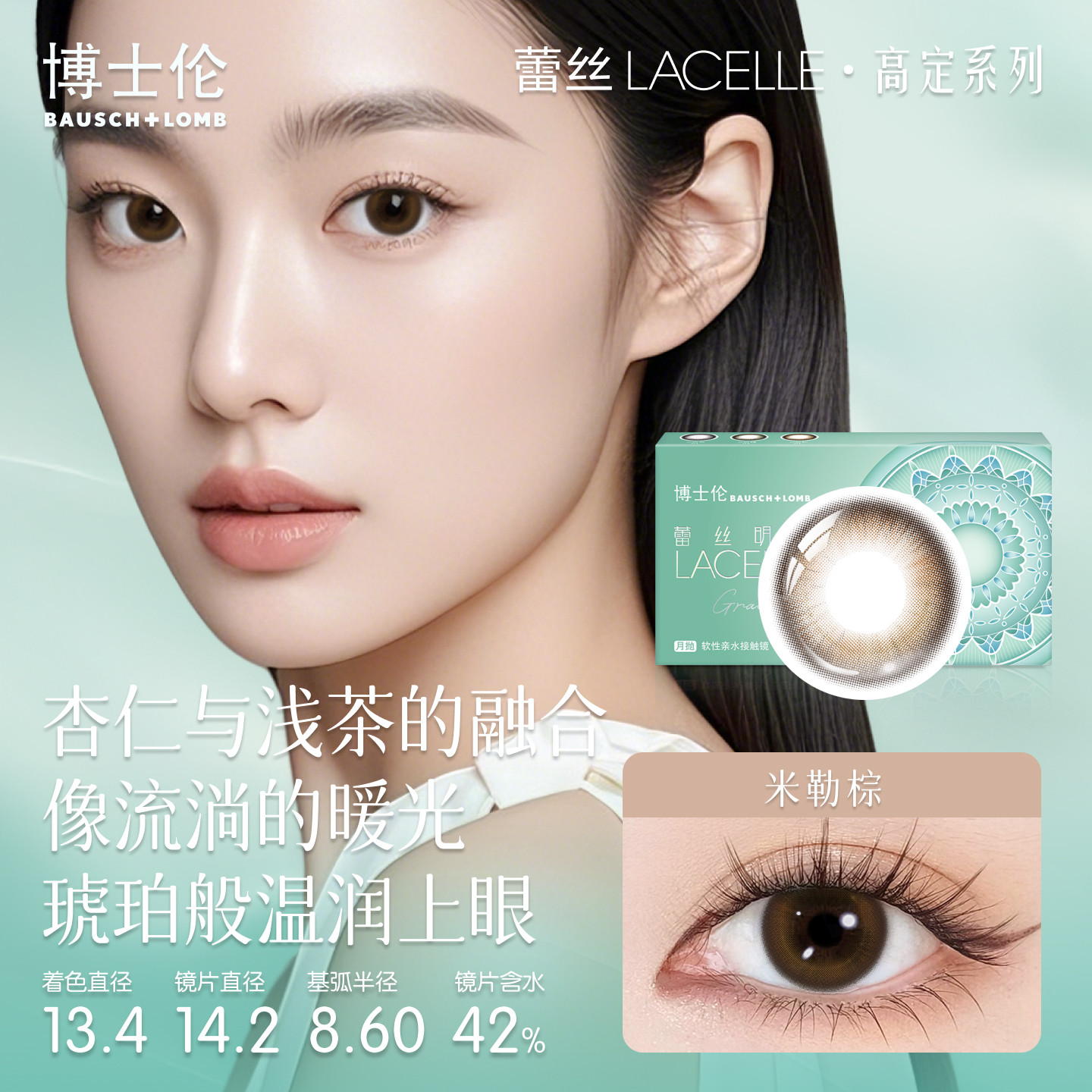 博士伦美瞳月抛隐形眼镜大直径棕色蕾丝紫色镜片官网正品 女2片