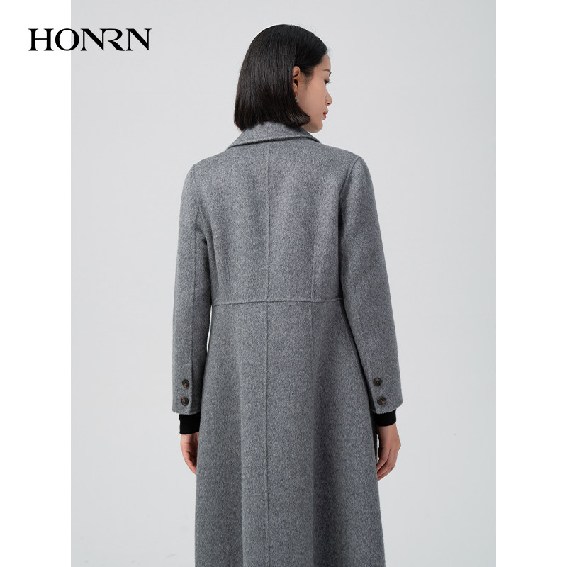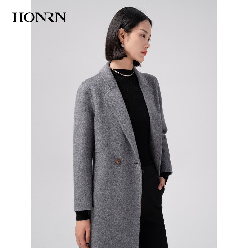 HONRN 红人双面骆驼绒桑蚕丝羊毛混纺呢大衣外套女秋冬HI59OD085