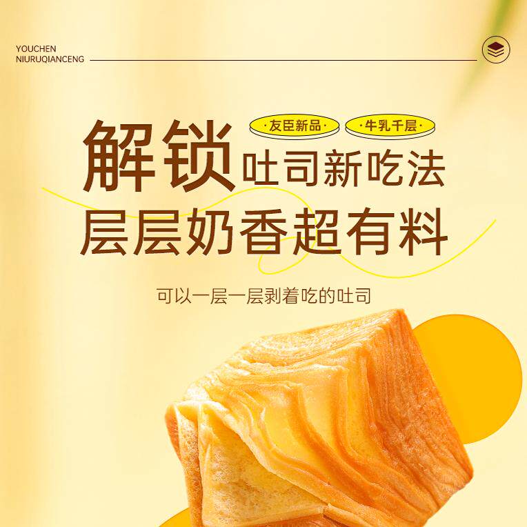 友臣牛乳千层吐司整箱480g早餐食品黄油翻页手撕面包晚上解馋蛋糕