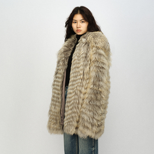 毛毛大衣 芬兰进口狐狸毛皮草外套女立领短款 首尔月光
