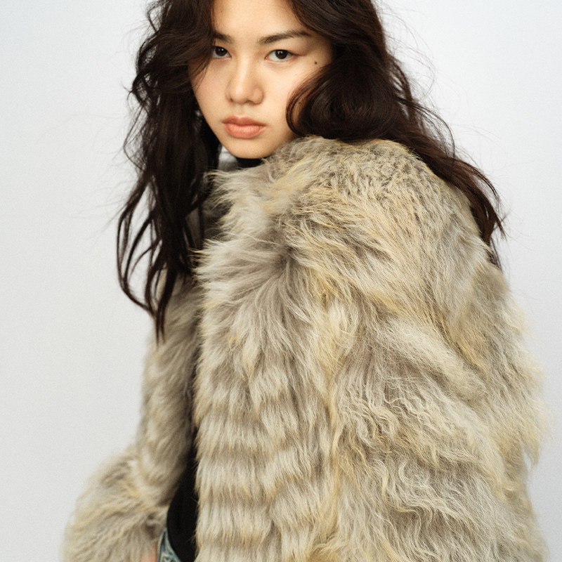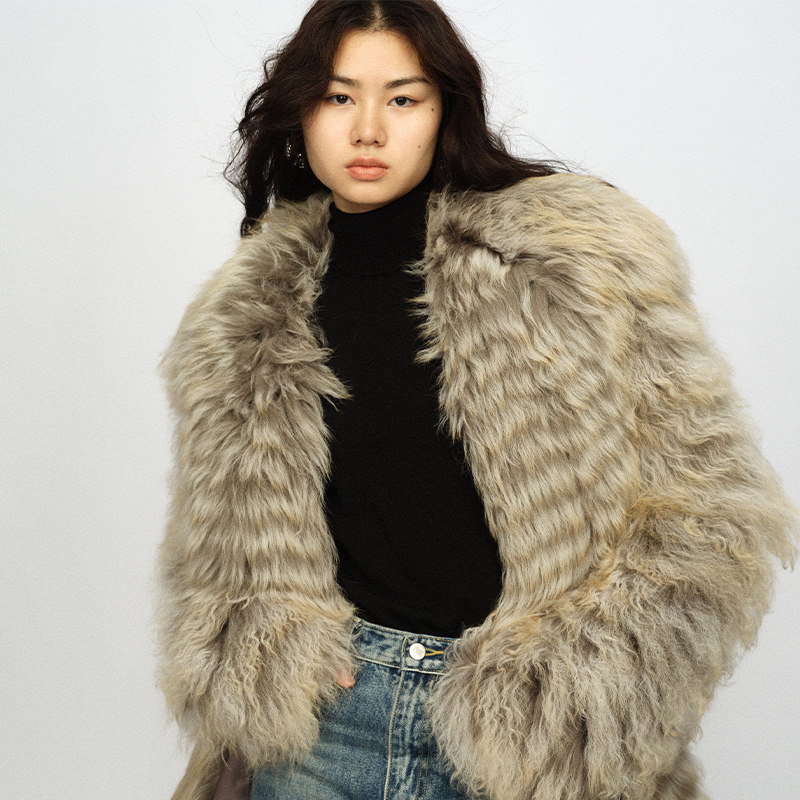 RPB 环保皮毛一体皮草毛毛外套女小个子牛角扣保暖上衣 BRAND