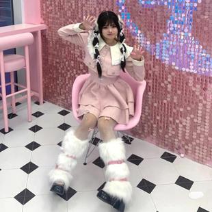 毛绒过膝袜子女秋冬款 长筒加绒加厚高筒保暖月子护膝大腿袜套冬季