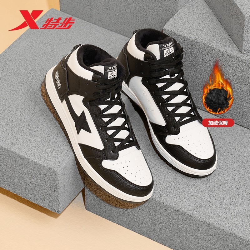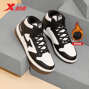 高帮滑板鞋 2025冬季 厚底增高加棉保暖棉鞋 时尚 特步棉鞋 休闲鞋 女鞋