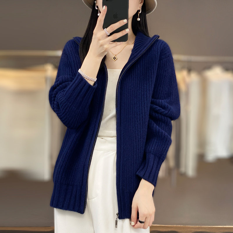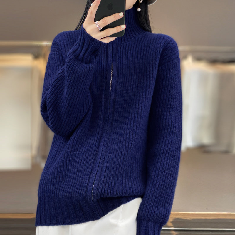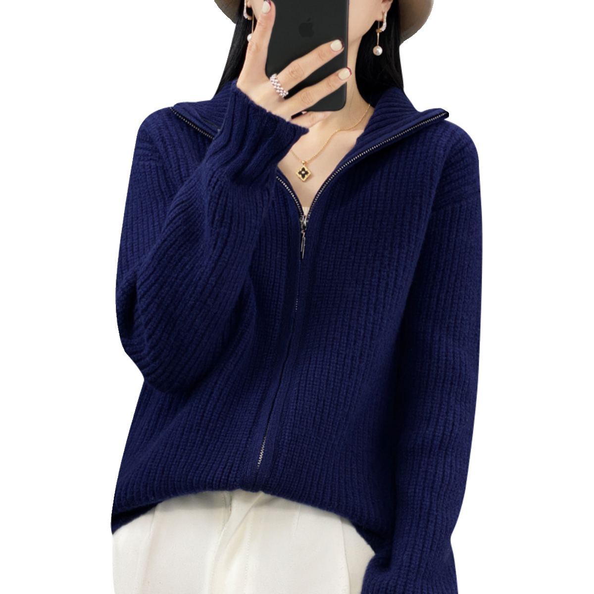 遮肉胖MM拉链毛衣开衫 秋冬中长款 立领针织外套女纯色宽松百搭大码