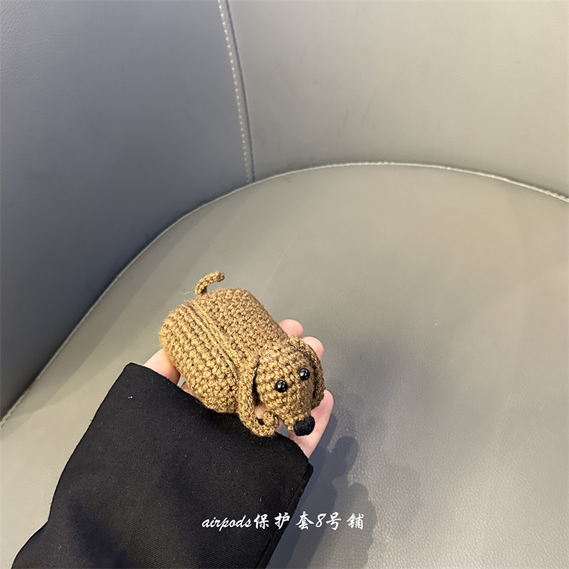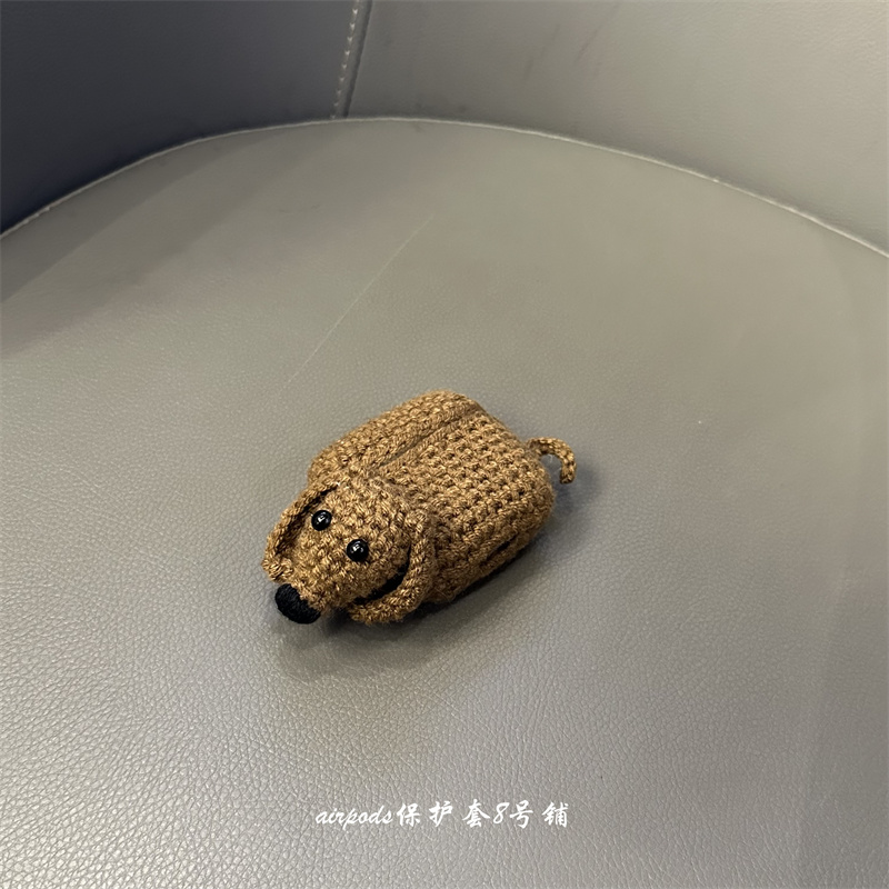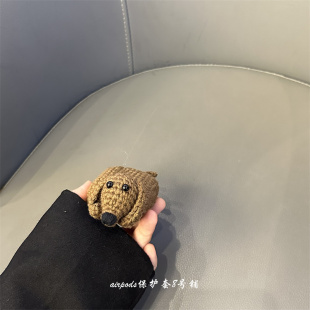 毛绒针织棕色可爱腊肠狗适用苹果无线蓝牙airpods pro1代耳机保护套2代3代壳