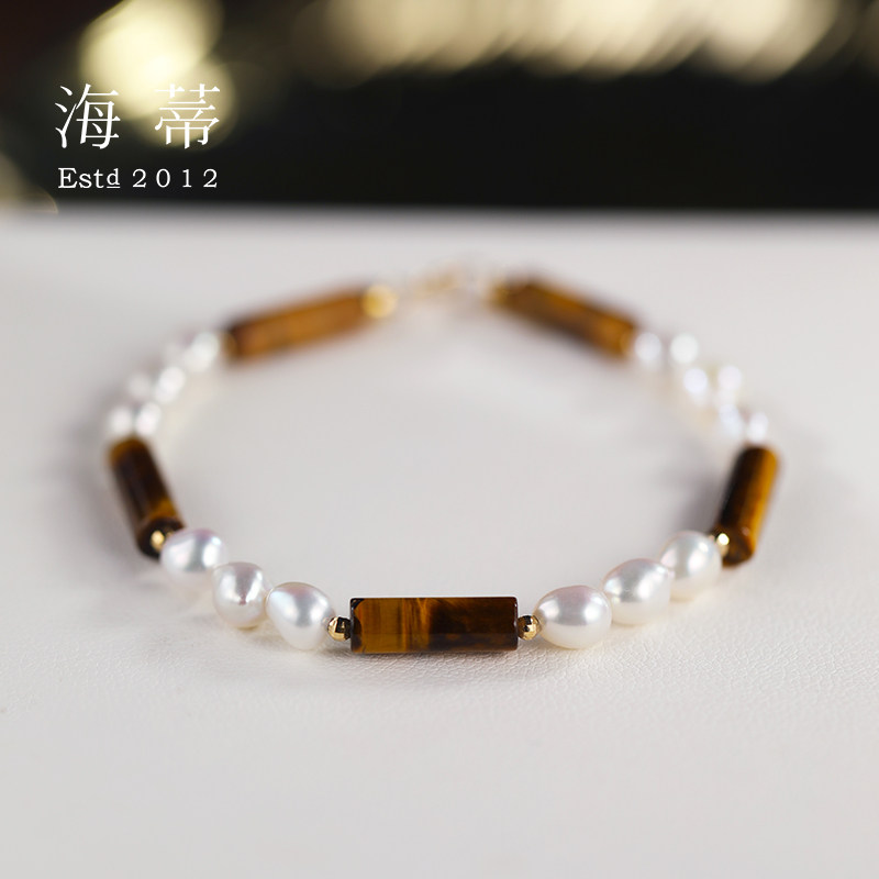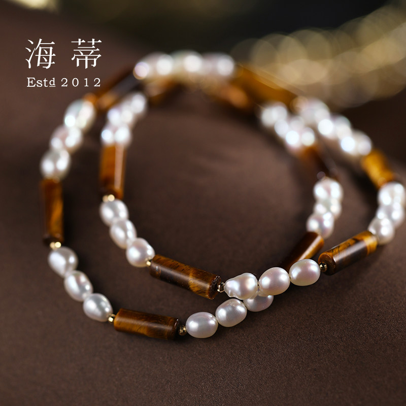 项链 5mm淡水珍珠虎眼石手链 美拉德18K金◇ 猛虎蔷薇4 海蒂珠宝