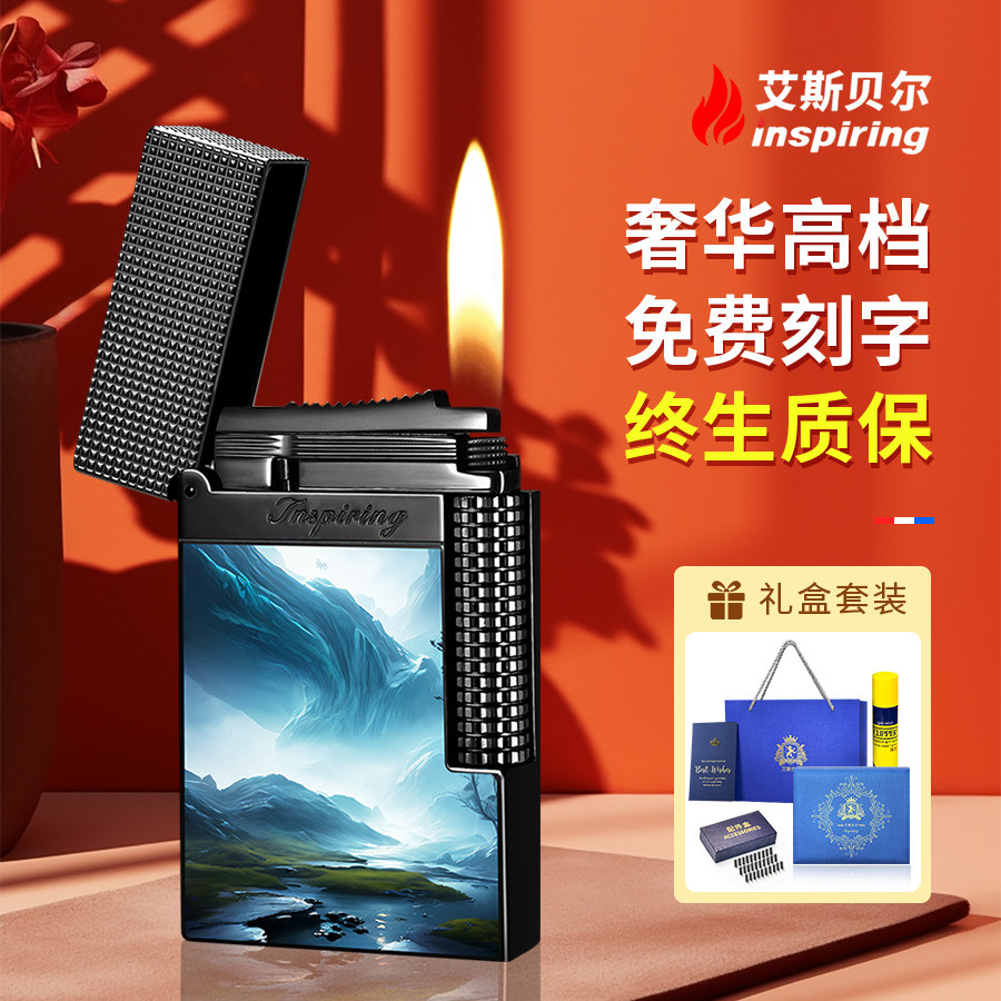 50支金属防风打火机耐用蓝焰直冲打火机可充气厂家直销家用批发