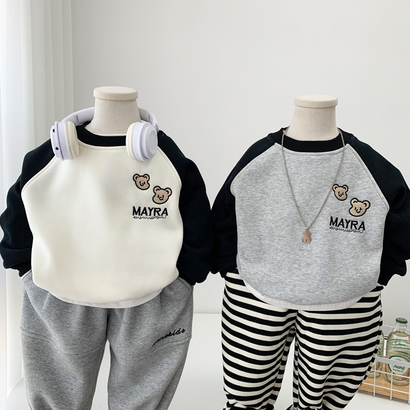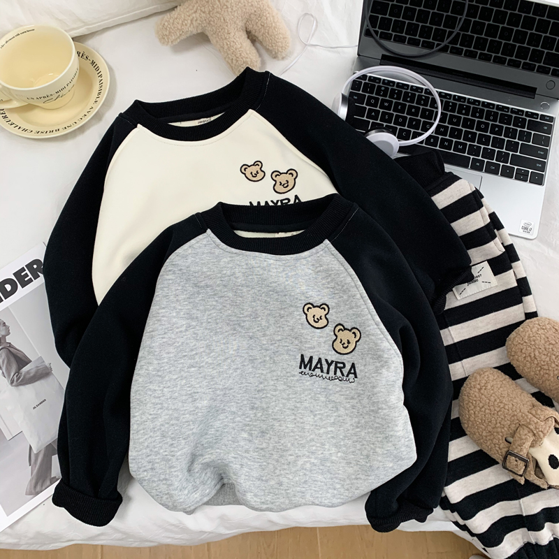 卡通洋气上衣百搭 儿童薄绒套头衫 男童一体绒纯棉卫衣秋冬装 打底衫