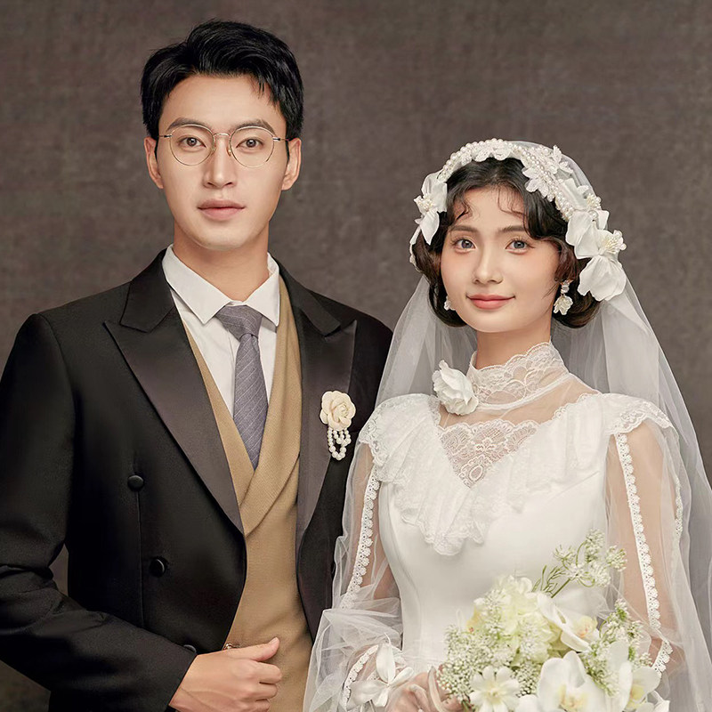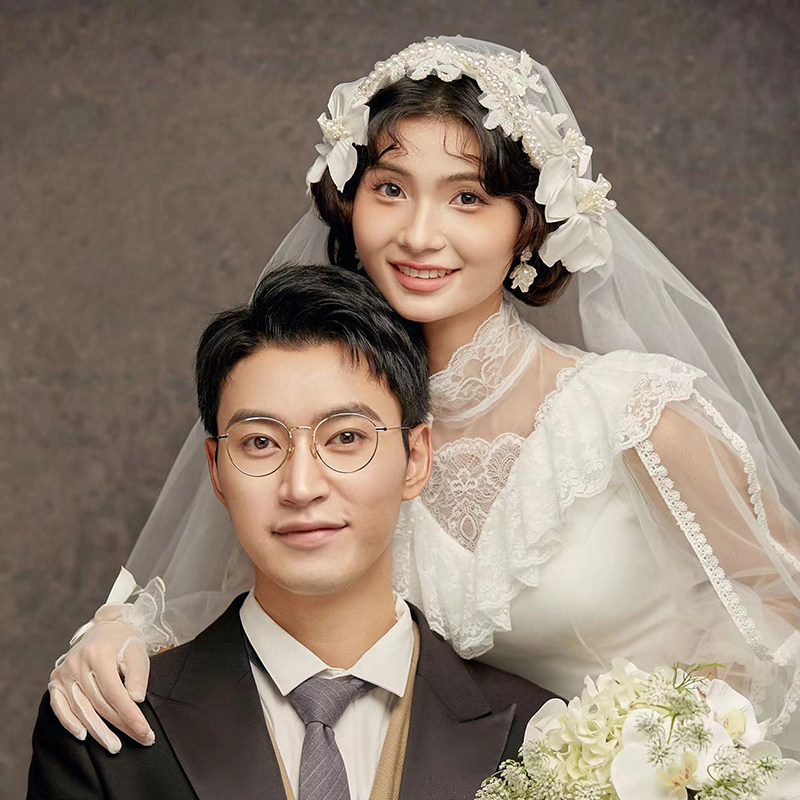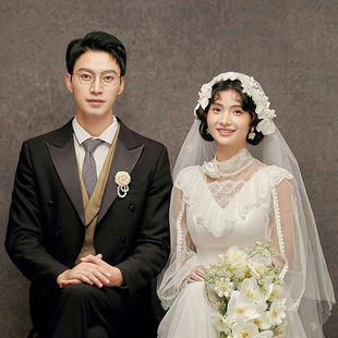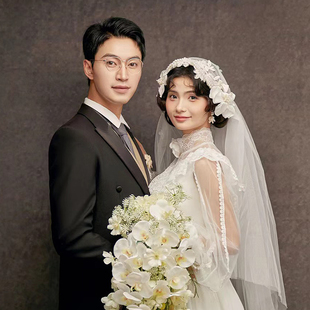 法式 复古民国风手工串珠花朵头纱新娘浪漫婚纱影楼拍照造型配饰品