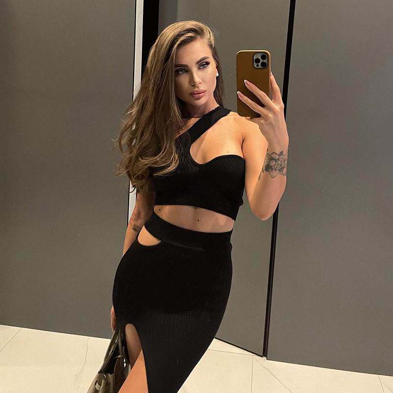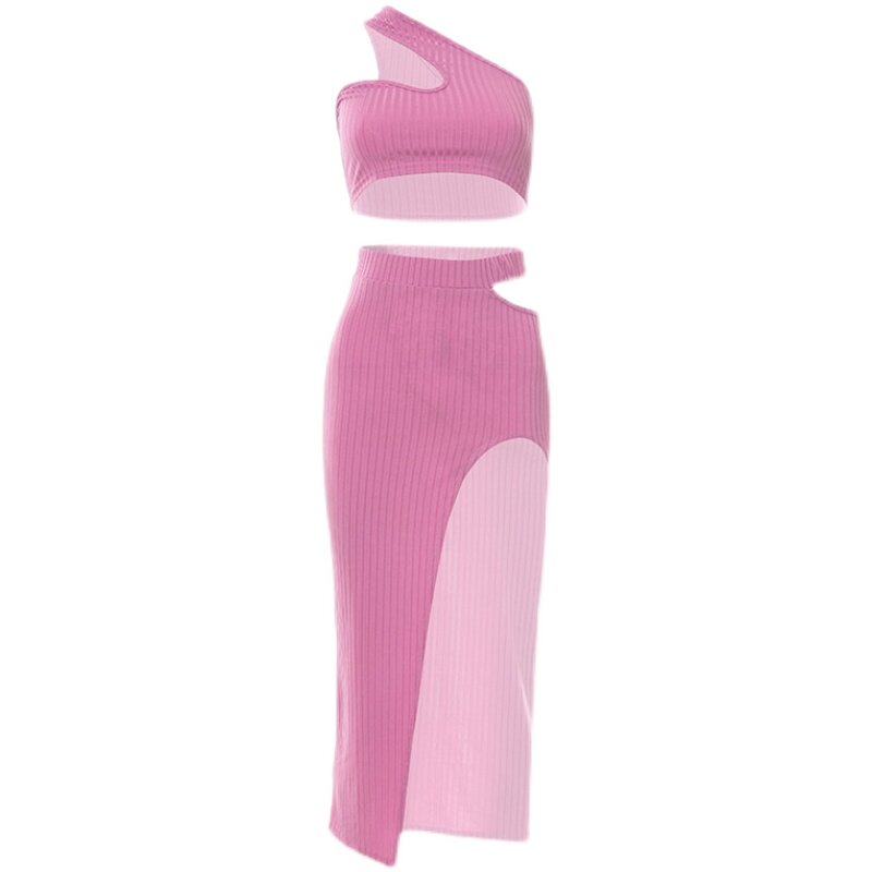 欧美风性感不规则斜肩镂空两件套裙ins时尚 紧身显瘦气质中长裙女
