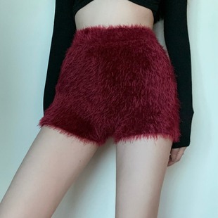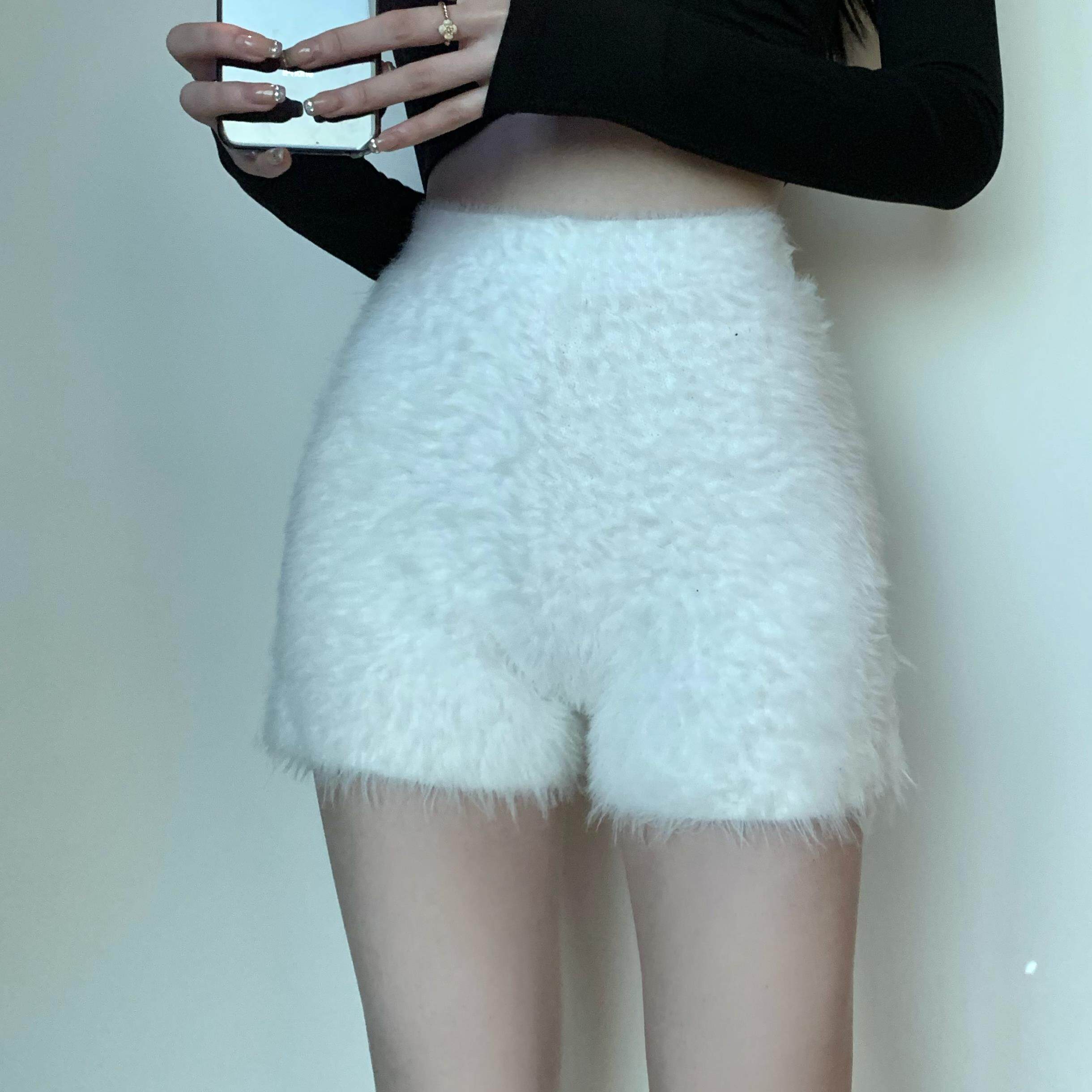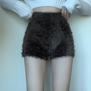 打底靴裤 秋冬高腰显瘦加厚毛毛保暖短裤 女外穿弹力貂针织休闲裤