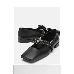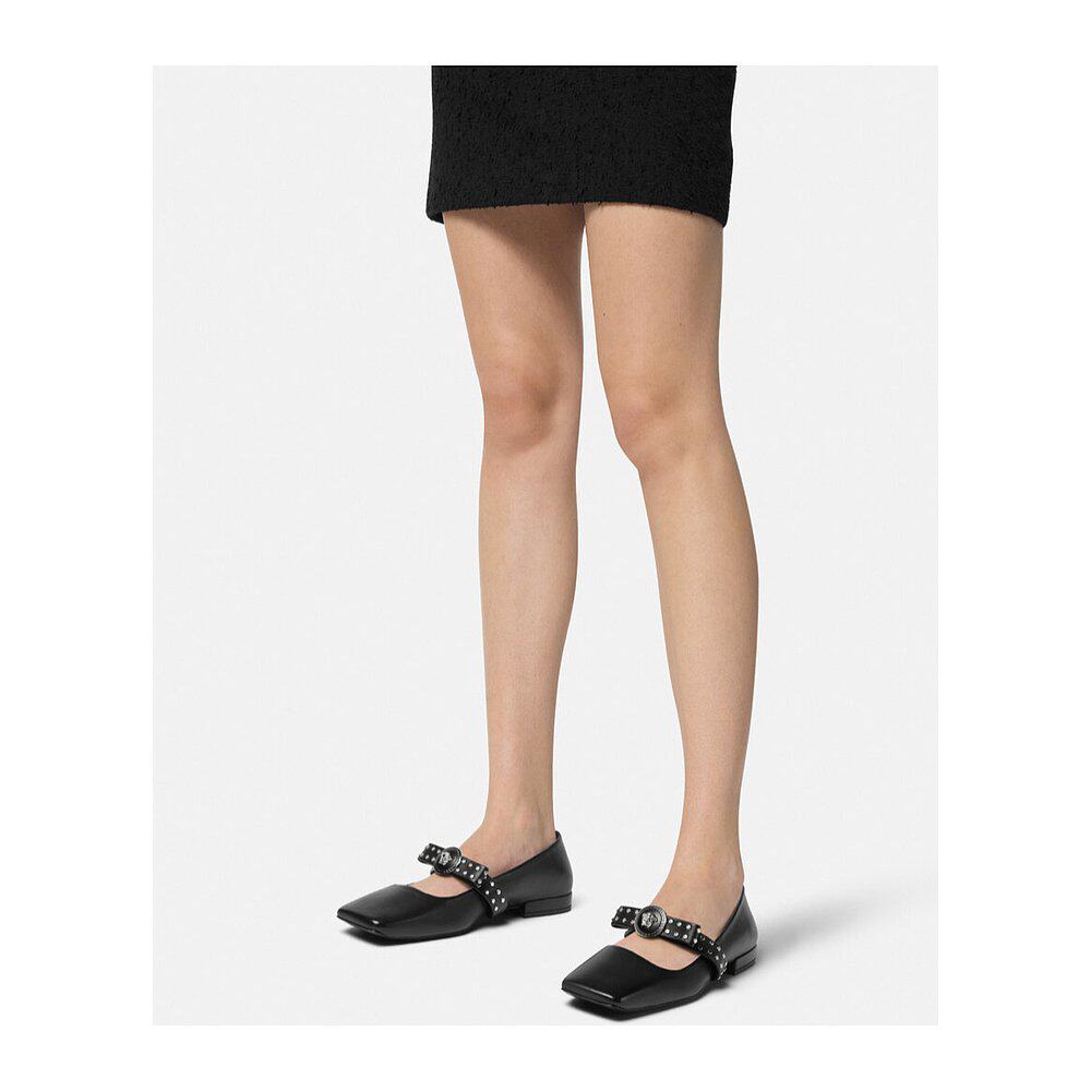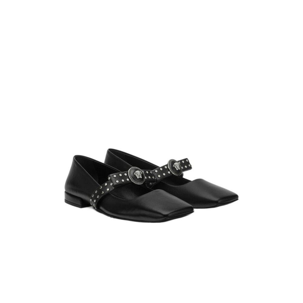 Crov范思哲银色牛皮女鞋 Women 铆钉芭蕾舞鞋 香港直邮VERSACE