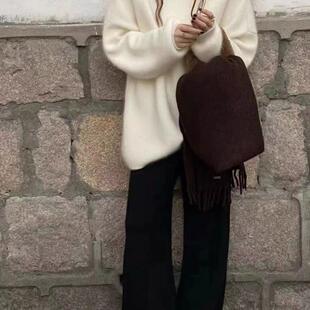羊绒宽松针织直筒外穿加厚加绒长裤 软糯羊毛裤 女秋冬高腰阔腿裤