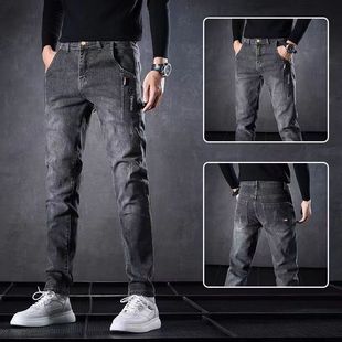 男装 牛仔裤 直筒宽松大码 休闲裤 子 春秋新款 耐磨劳保工作裤 弹力男士