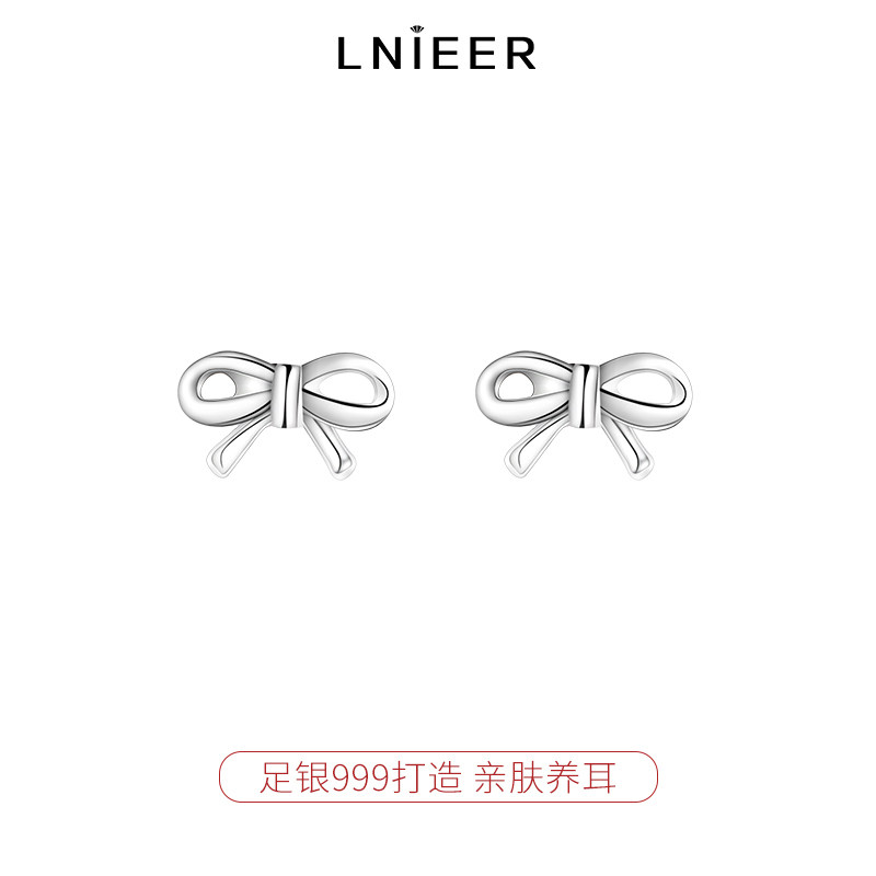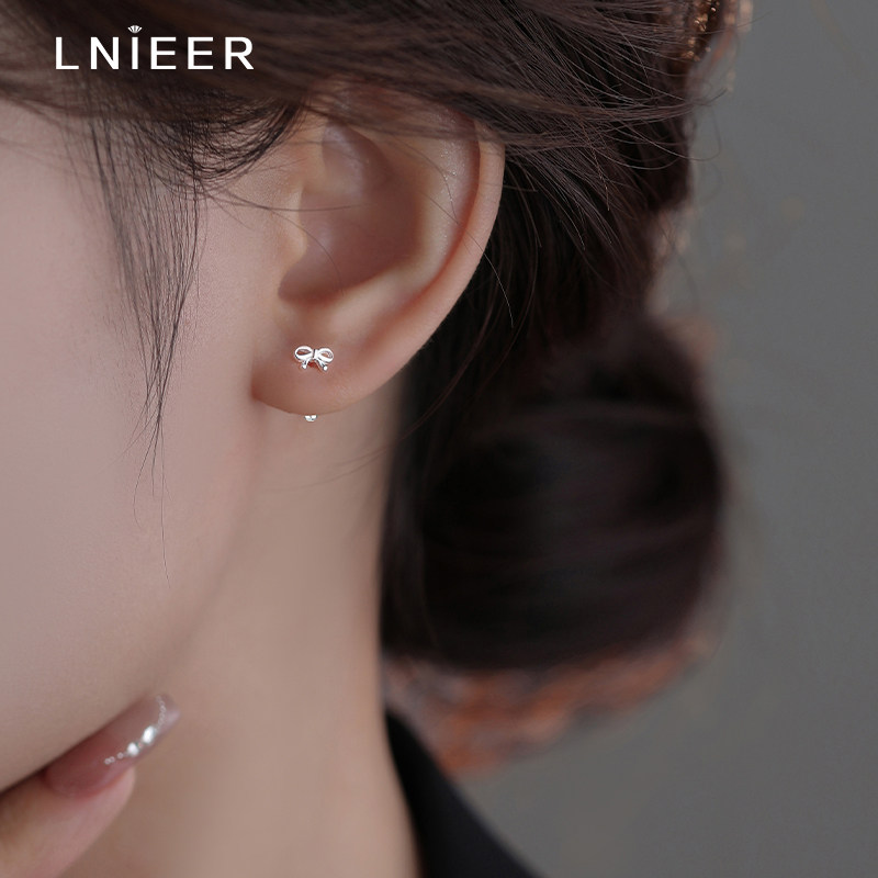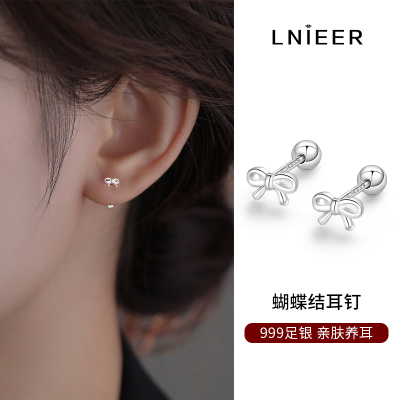 999纯银蝴蝶结耳钉女甜美温柔耳骨钉养耳洞耳环睡觉不用摘银耳饰