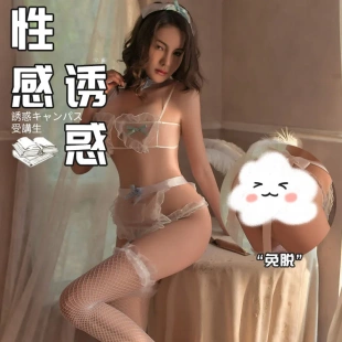 4247潮尚夜总会内衣女性感花边透视系带女仆装 三点爱心制服套装