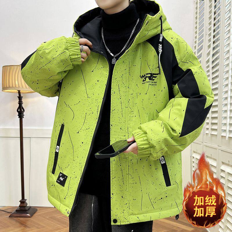 爆款 连帽棉袄青少年学生夹克保暖棉衣服 加绒加厚外套男秋冬季