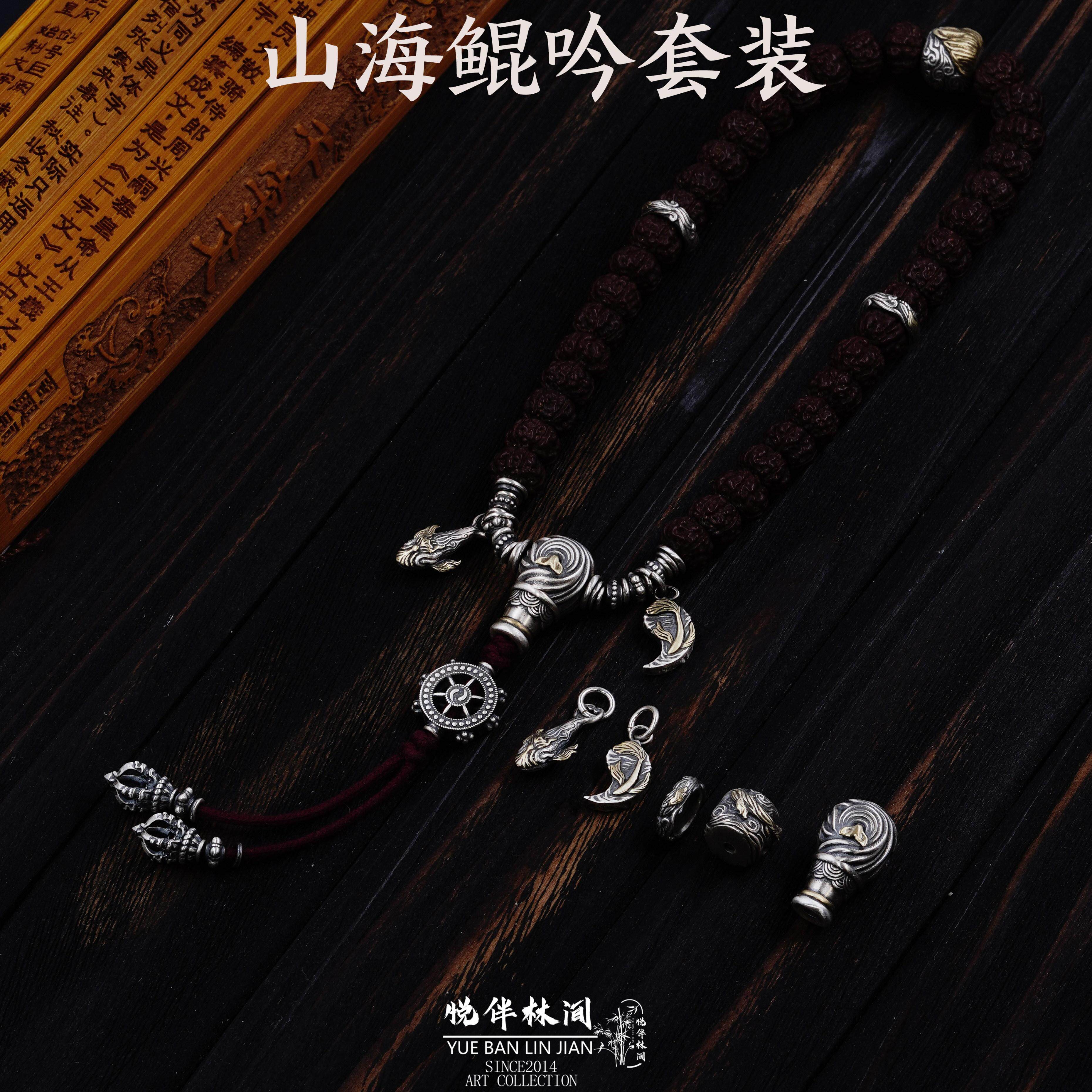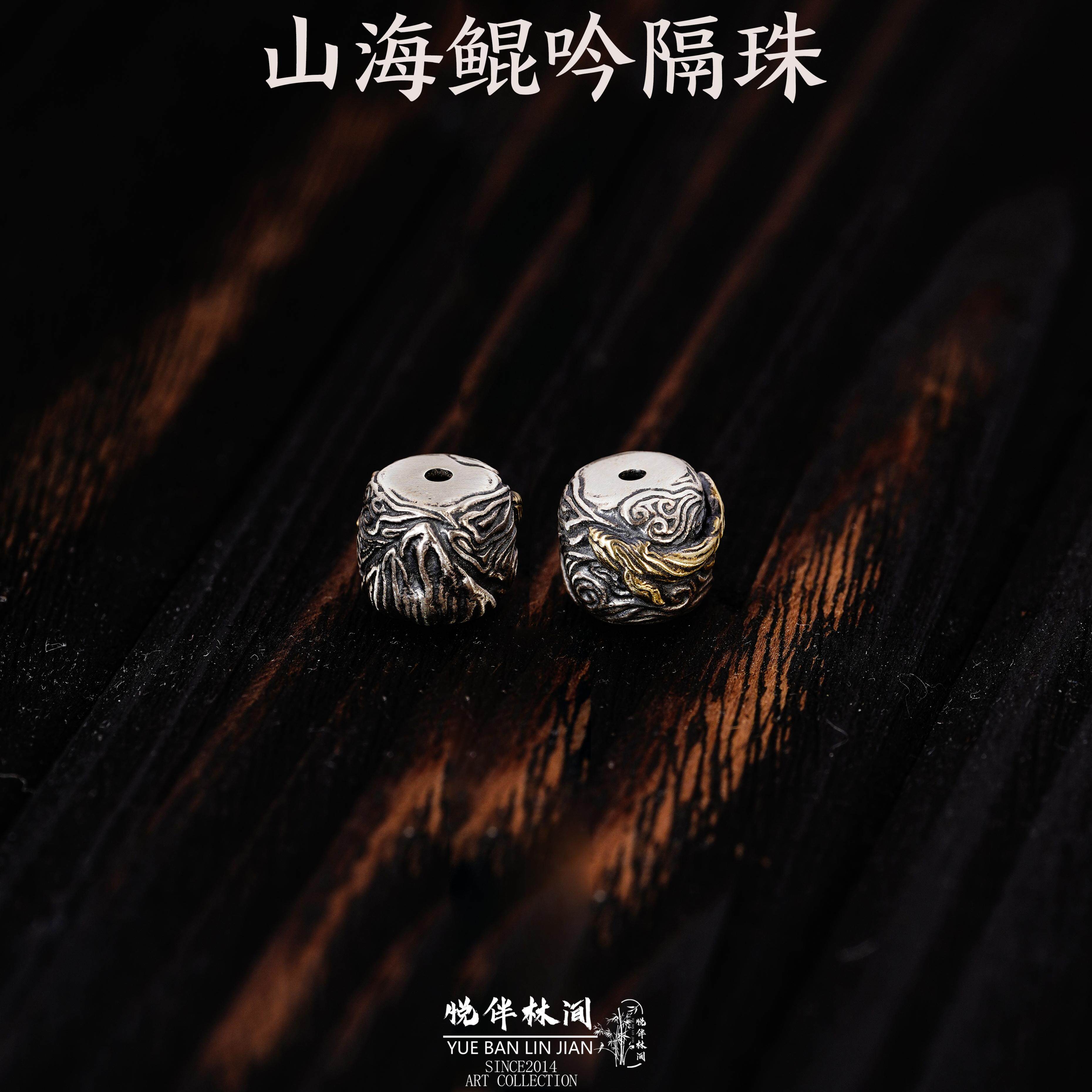 S925纯银山海鲲吟三通卡环隔片隔珠手串diy配件文玩配饰散珠银饰