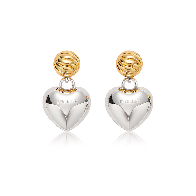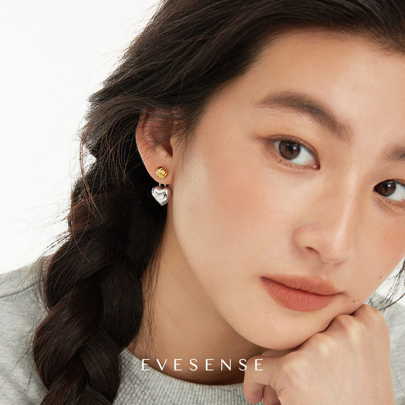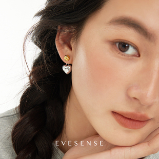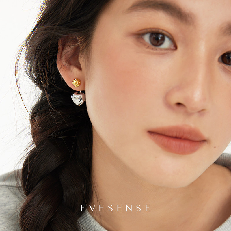 EVESENSE简约双色水波纹爱心耳环高级感小众设计百搭韩系气质耳饰