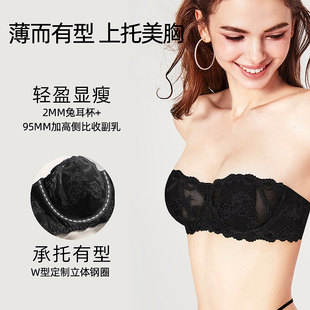好奇蜜斯无肩带内衣女防滑纯欲蕾丝小胸挂脖抹胸文胸罩薄2025年春