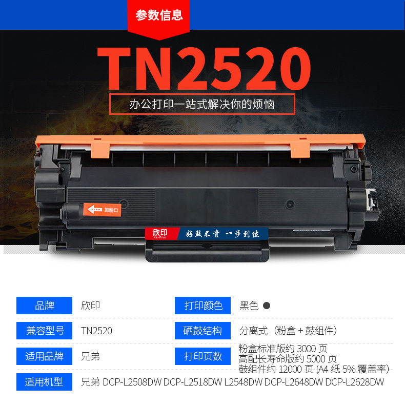 L2648DW墨粉DCP 欣印适用 L2518DW墨盒L2548DW碳粉DCP L2508DW打印机硒鼓DCP L2628DW鼓架 兄弟TN2520粉盒DCP