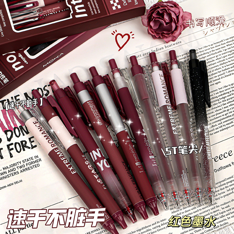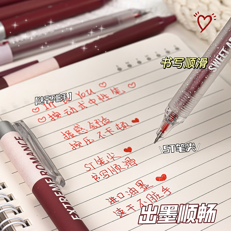 新款 波尔多红按动笔刷题笔复古色按压红色中性笔速干笔批作业红笔考验错题标注改错专用ST笔尖