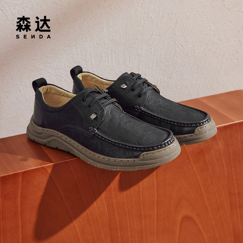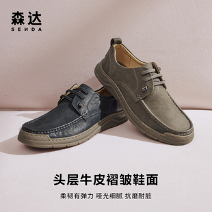ZYC13CM4 百搭头层牛皮鞋 森达复古休闲皮鞋 男春秋舒适软面系带时尚