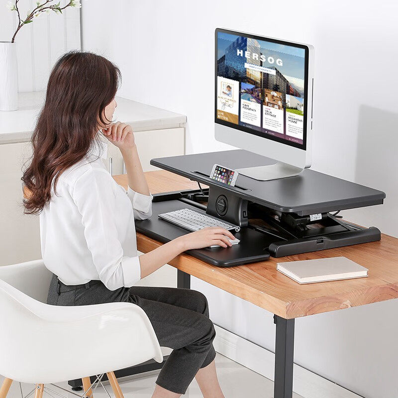 Brateck北弧电动升降桌站立式 工作台电脑支架增高D760
