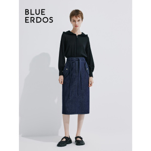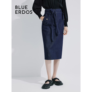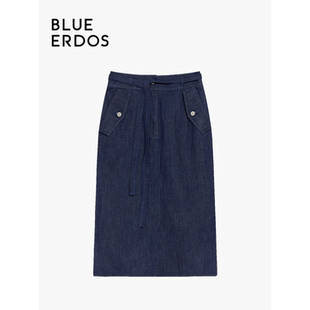 BLUE ERDOS通勤简约H型棉麻混纺牛仔半身裙B245M0035