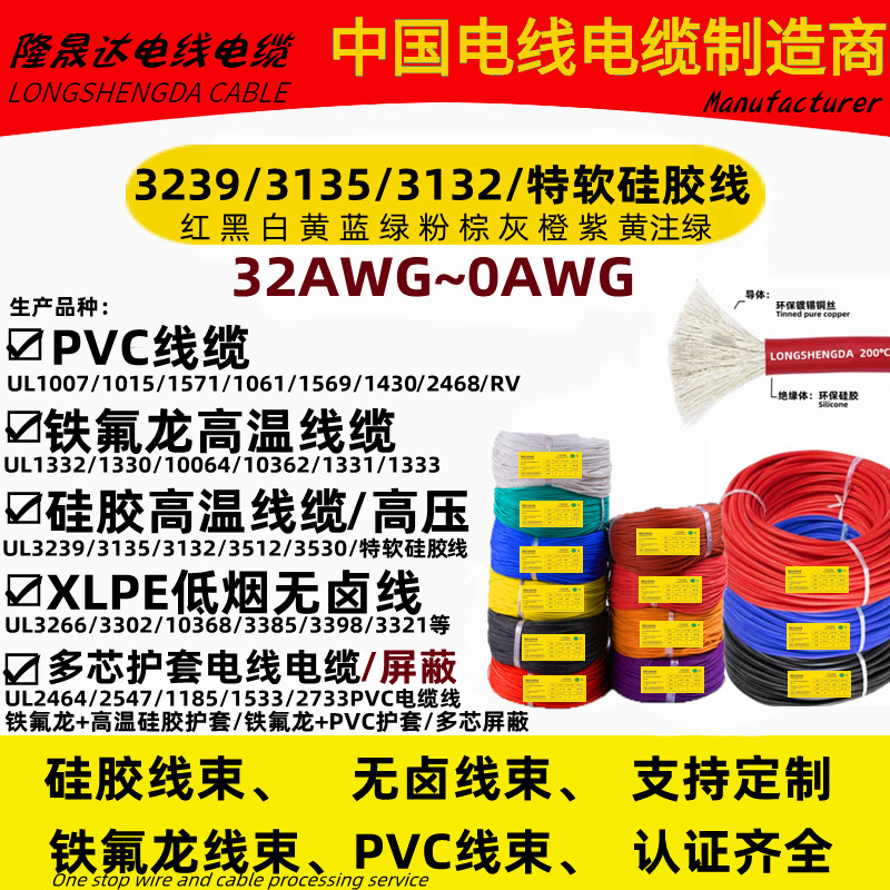高温硅胶线UL3239 3132 24AWG3512特软硅胶线 3135