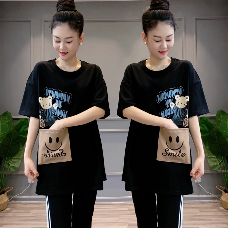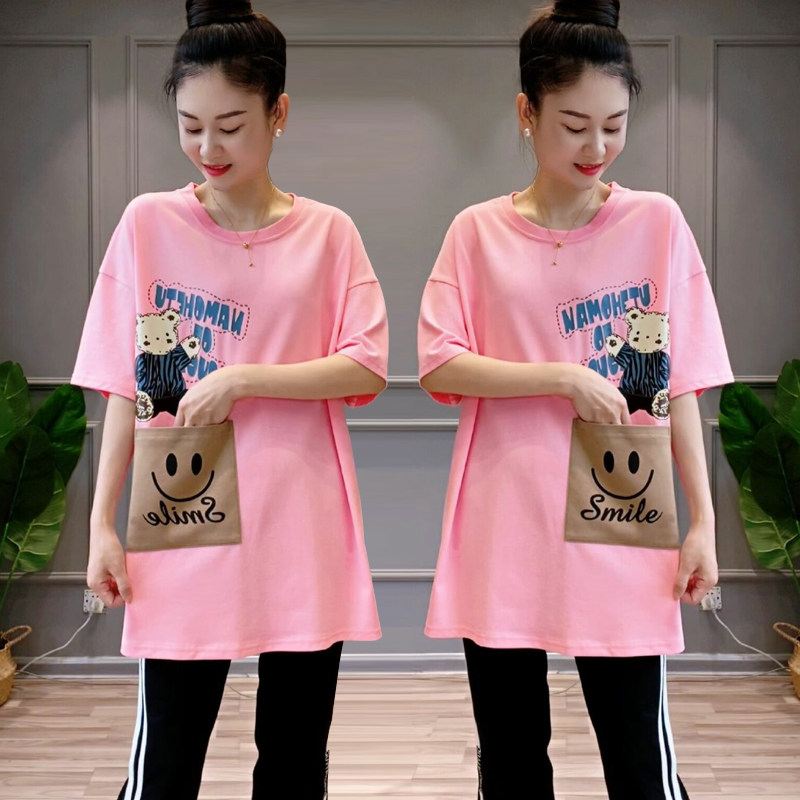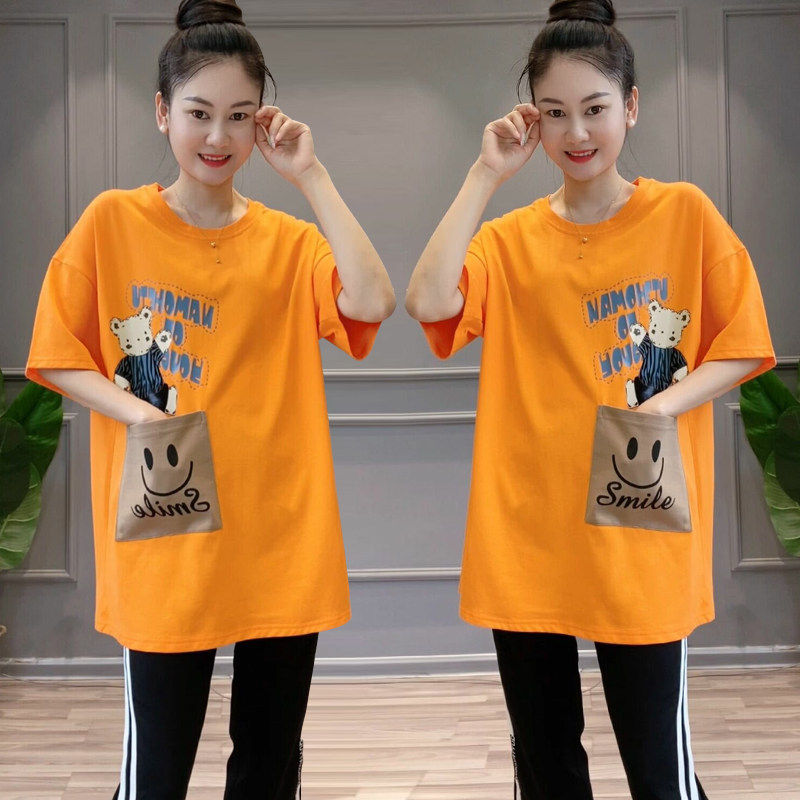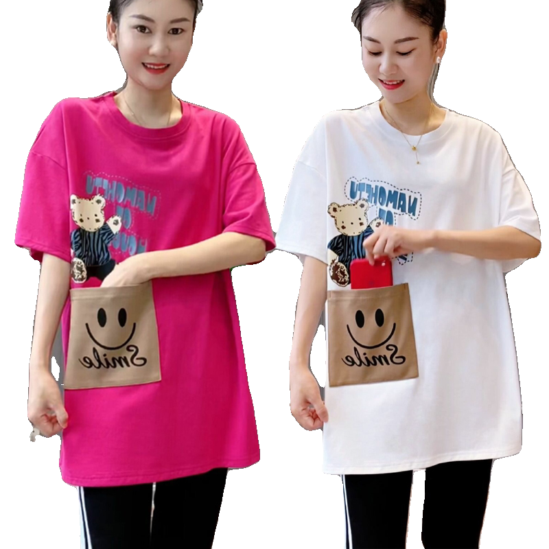 宽松显瘦休闲减龄小熊印花大口袋短袖 大版 t恤女上衣 新款 2026夏季